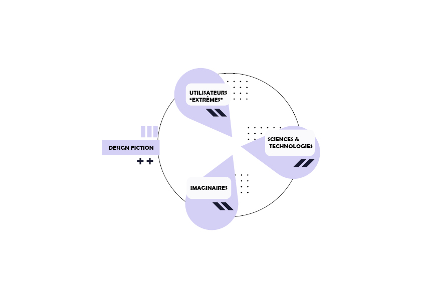 Pour aboutir à un concept fort et crédible, il est essentiel d'explorer la thématique abordée en profondeur et d'adopter plusieurs points de vue différents mais complémentaires, tels que les imaginaires, les utilisateurs extrêmes et les avancées scientifiques et technologiques. Le décalage créé entre un concept futuriste et un contexte familier du présent suscite une réaction et une réflexion, ce qui constitue l'expérience d'un design fiction.