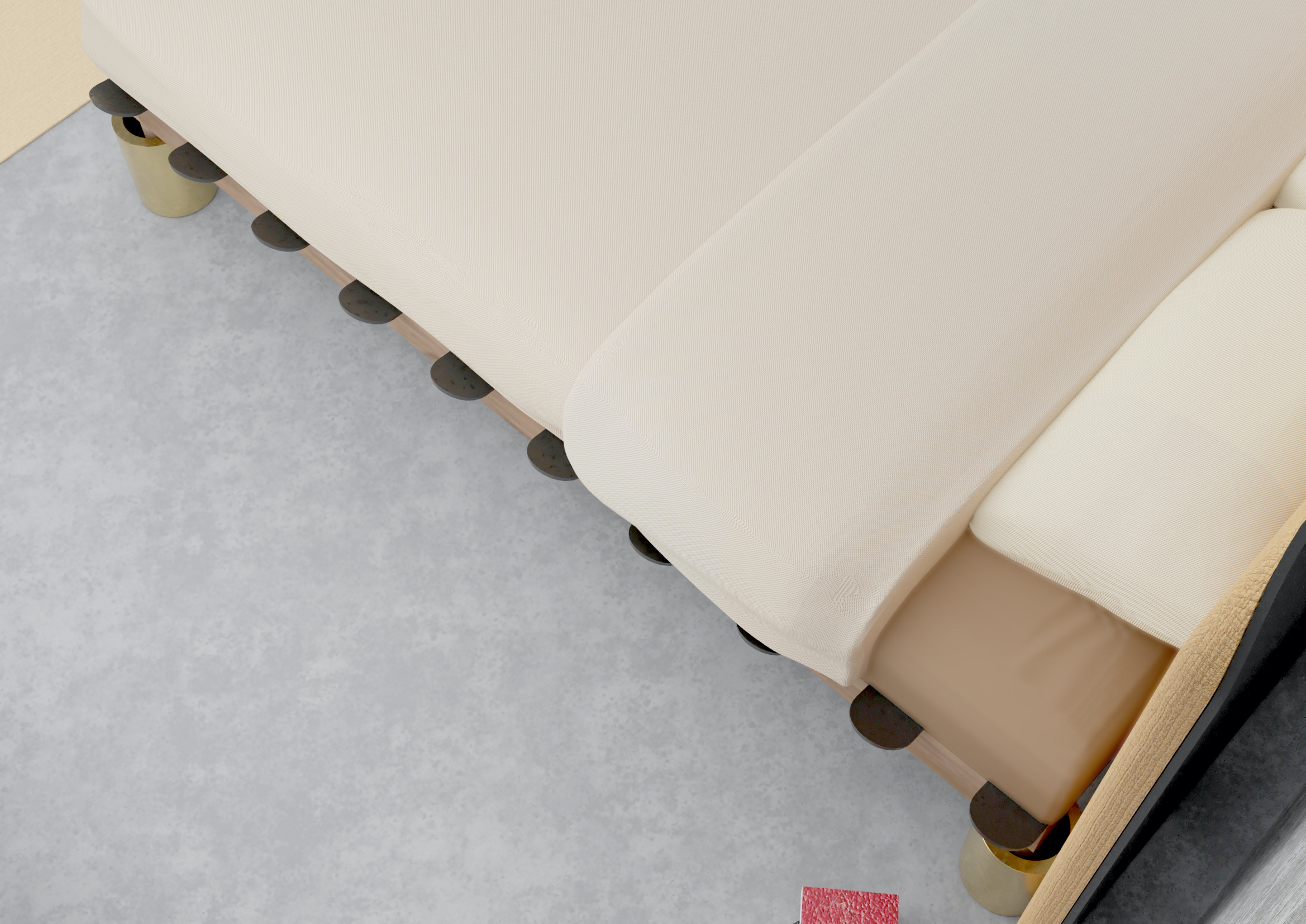 Combinant l’univers de la haute qualité du sport d’hiver et des principes qu’incarne l’entreprise Elite et associant le savoir-faire artisanal avec Eco-conception, SCHUSS s’inscrit dans une véritable démarche artistique. S’appuyant sur une réflexion de l’upcycling, le design du SCHUSS a été pensé pour répondre à un besoin de concevoir d’une façon intelligente et détaillée la gestion des déchets, tout en transformant et valorisant les matériaux. Sans épuiser les ressources de la planète, à travers l’upcyling, de nombreux matériaux improbables deviennent de magnifiques objets du quotidien. Utilisant les Snowbord et les Ski comme matériaux premiers, SCHUSS découle d’une ressource devenue intarissable et une revalorisation de matériaux. La tête de lit est conçue avec des snowbord capitonnés par des chutes de mousse de matelas et couvertes avec du Chanvre qui est une des fibres les plus résistantes et les moins polluantes. Le sommier du lit est fabriqué avec des Ski qui accentuent la solidité de la structure, joignant ce dernier avec des pieds de forme sphériques en bois recyclé et plaqué en Laiton pour ressortir le côté luxueux. SCHUSS définit un art de vivre respectueux et éthique, en phase avec une empreinte élégante et harmonieuse.