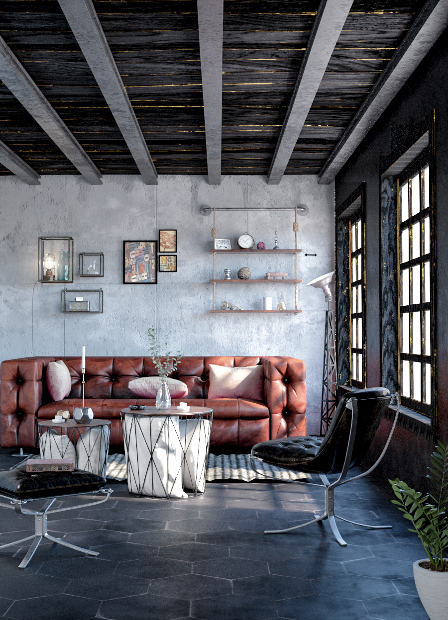 Rendu photoréaliste d’architecture : style industriel élaboré lors d’une formation cerfiée Autodesk.